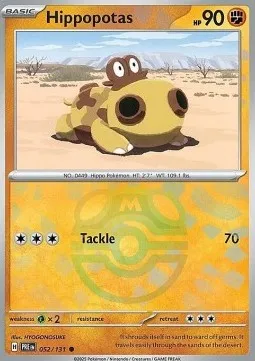 Karta Pokemon TCG reverse holo z pokeballem Hippopotas PRE 052 z dodatku Prismatic Evolutions