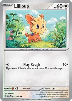 Karta Pokemon TCG reverse holo z pokeballem Lillipup WHT 074 z dodatku White Flare