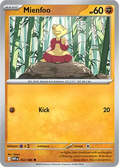 Karta Pokemon TCG z pokeballem Mienfoo WHT 052 z dodatku White Flare