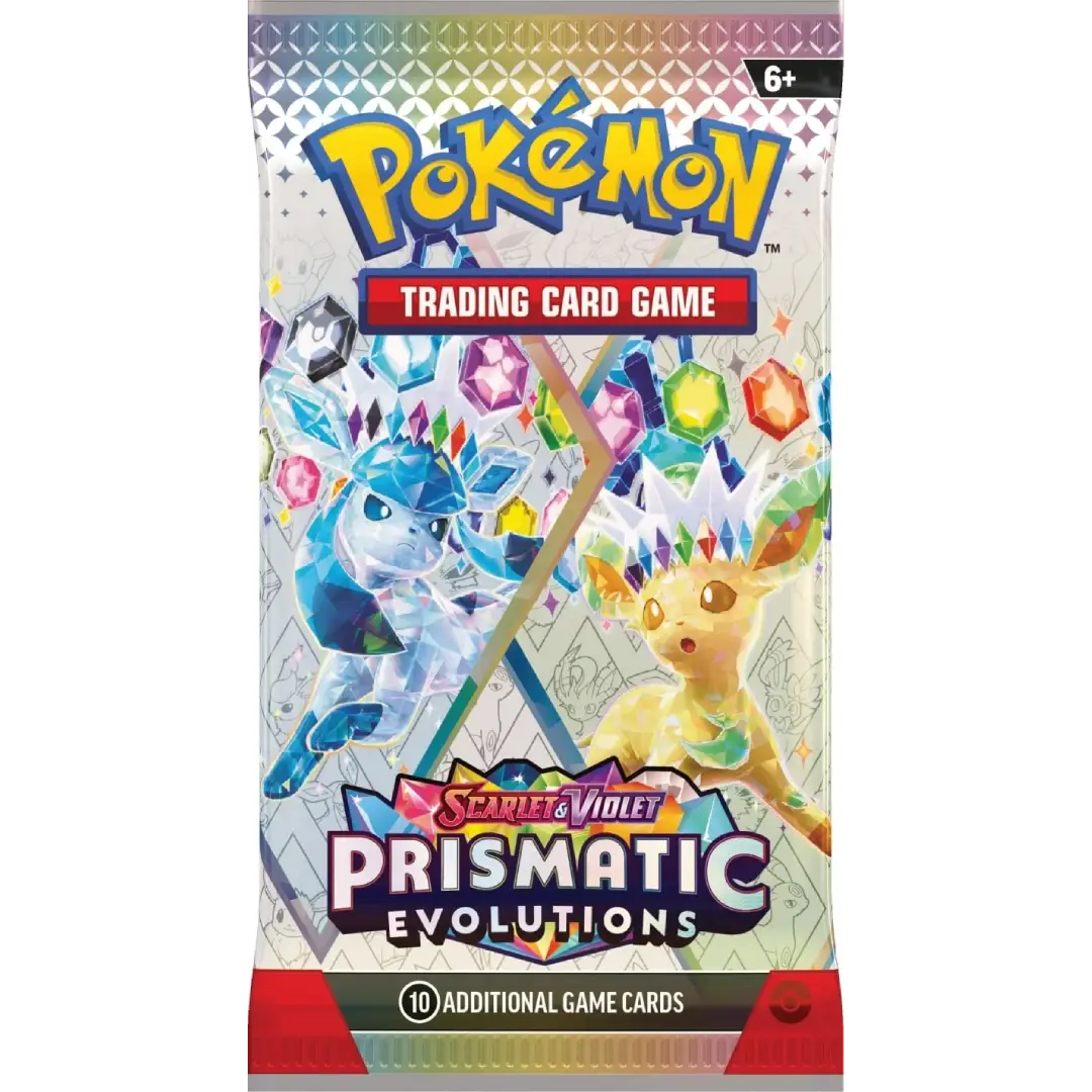 - Każdy booster zawiera 10 losowych kart z serii Scarlet & Violet - Prismatic Evolutions
